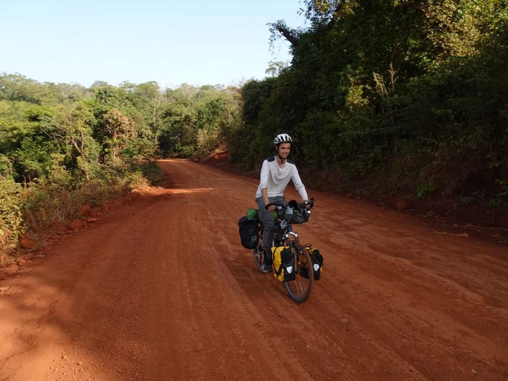 Après un Sénégal très plat, nous voici dans les montagnes guinéennes. Ça n’a pas été de tout repos, et on en a même sacrément bavé : comme nous sommes dans une zone pas du tout touristique (pas d’hôtel ni de campement) on a pédalé 8 jours d’affilée sans pause. Et ça montait sévère (2300 m de dénivelé positif). Rajoutons à cela le poids des sacoches, le soleil qui tape dur et la route dans un état pas très académique, ça faisait beaucoup et il y a même eu quelques petits craquages 🙃.
