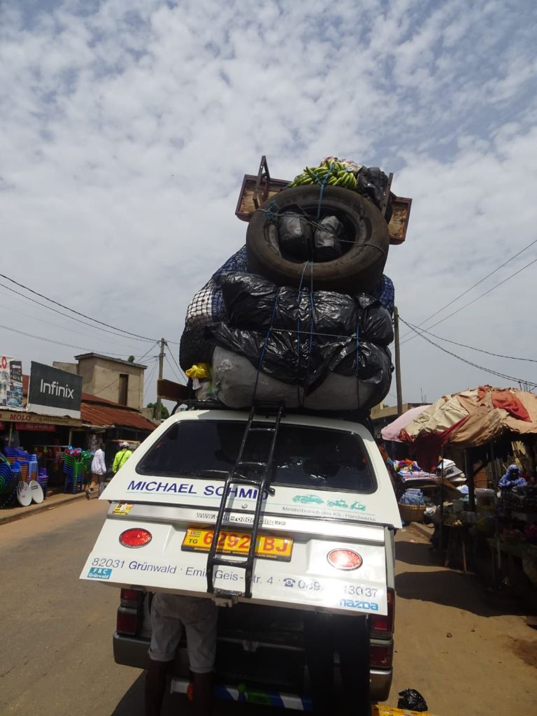 Avec Cécile on a visité le Togo et transports, en laissant les vélos à Notsé. Jeu : saurez vous retrouver la paire de sacoches qui se cache sur notre taxi collectif ?🧐