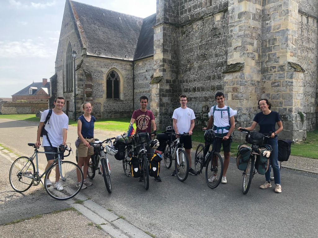 Toute une équipe nous rejoint pour notre dernière semaine de vélo ! De gauche à droite : Geoffroy et Domitille, un frère et une sœur d’Astrid, Matthieu, Alexandre (un ami commun), Bastien le frère de Matthieu et Astrid.