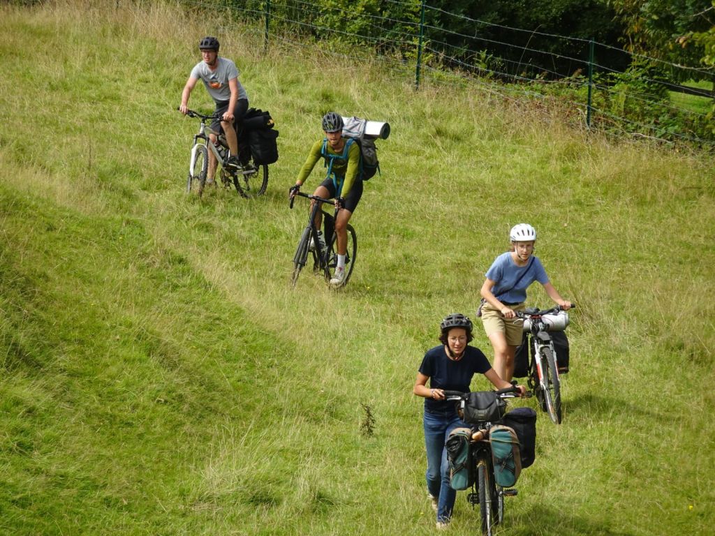 On suit donc plus ou moins l’avenue verte, piste cyclable qui relie Londres à Paris. On est trop content de retrouver tout ce beau monde… et du bon fromage français 😋.